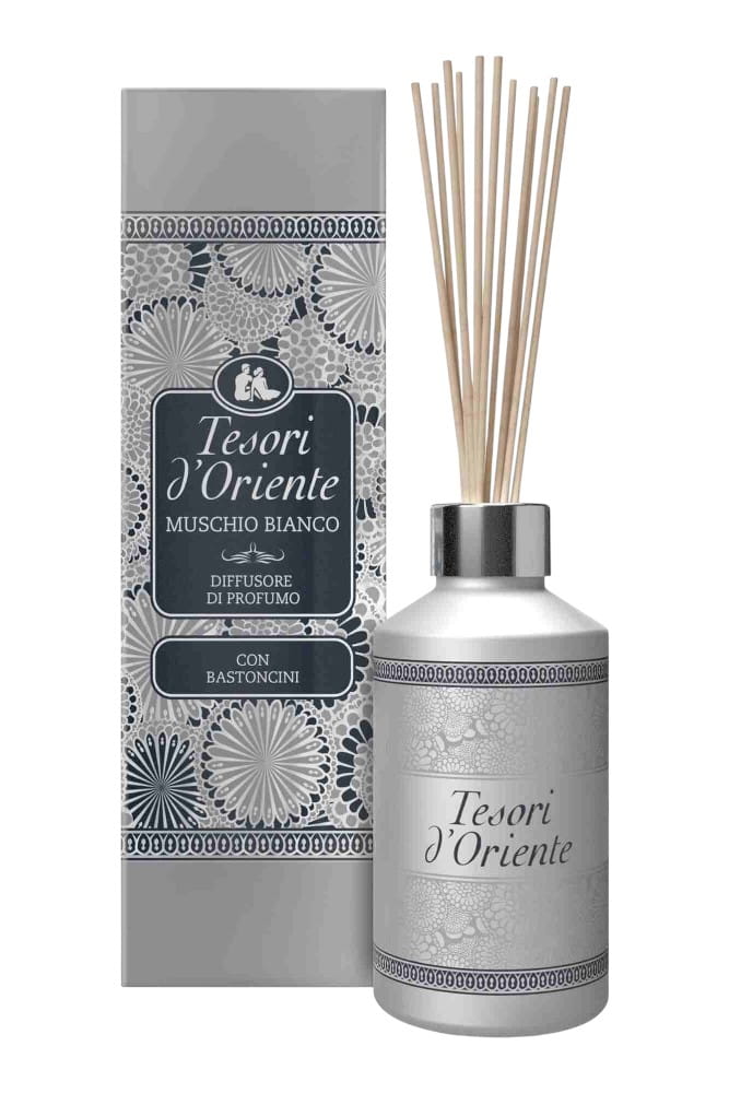 Tesori d'Oriente Patyczki zapachowe Białe piżmo o pojemności 200ml to doskonały sposób na nadanie Twojemu domowi przyjemnego zapachu. Delikatny aromat białego piżma otuli Twój dom nutą elegancji i czystości.